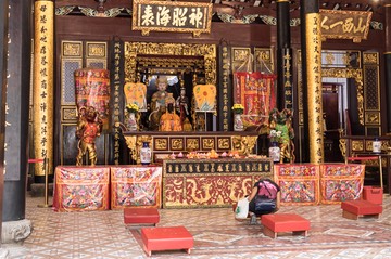 A temple was first built on this location in 1821, and like many important Chinese temples in the old Straits Settlements, it celebrates a Chinese sea goddess and was worshipped by the seafarers. The Thian Hock Keng Temple is the oldest and most important Hokkien temple in Singapore. There is a smaller shrine at the back dedicated to Guanyin, the Goddess of Mercy. Also at the back you can find display panels explaining the significance of the various stone carvings in this temple.