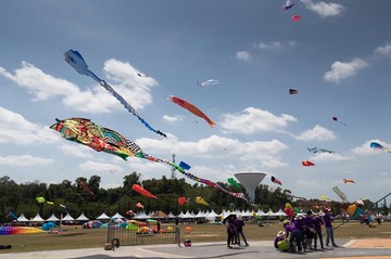 From 28th Feb to 3rd March is the International Kite Festival at Pasir Gudang; just follow the road signs for the Muzium Layang-Layang, and park in the large open air car park. We arrived about 10:30 am today when there were plenty of kites in the sky, but we could not identify any structure to the activities. We slipped into an area by a stage for a good view, and then found these young dancers performing behind us but with no audience. The stage faced out to the view in the photo above. Then when we tried to move away, the gate had been locked! Anyway, we escaped after taking lots of photos and getting very very hot.
