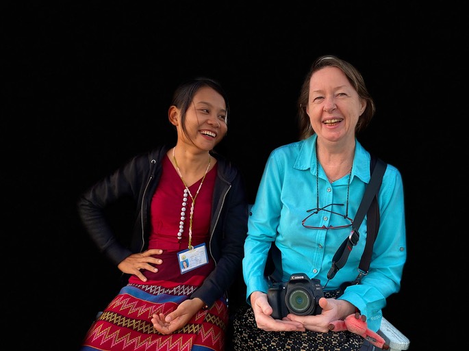 We could now safely sit out on deck for the return journey. Here’s a photo of me and our lovely guide, May. It was not really black darkness but Lawrence playing with an app on his phone.