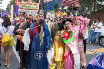 The Night Parade is a spectacular extravaganza of lights and sounds, but most of all it is the occassion for the five temple deities to come out of the Johor Chinese Old Temple and onto the streets of Johor Bahru to bless the inhabitants of this city. The main deity of the temple is Yuan Tian Shang Di (shown right) and he is the last of the five deities to be paraded around the streets.