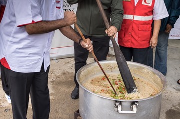 And while the villagers chatted outside the hall, other members of the MRC were getting ready to distribute the 1,000 pots of delicious Burbur Lambuk to the local community.