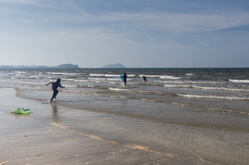 Because this week was also a school holiday, then the beach was busy with people. Previously when we have visited during the week, we were practically the only people there. So, once the sun had faded a little, I headed out to take some photos. Once again, people seemed very happy, almost insistent even, that I take their photos. And what struck me in particular was how people here played on the beach in the same way as back in the UK. There were groups of people far out amongst the waves, but even more simply sat at the water’s edge; I guess that swimming in full Malay dress is not that easy and I certainly did not see any birkinis here. And, there were kids burying friends and fathers in sand, just as I would have done as a child.
