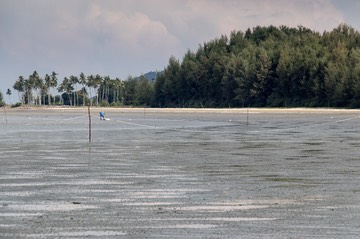 Further north from the beach near Sukalayar Resort, is Hanis’s beach. Again, it is very flat with shallow calm seas. On this afternoon, the tide was out so we had to walk over mud flats to watch the students use nets to catch some fish. In the two photos below, you might just be able to see a ‘real’ fisherman. The lines you see between the sticks are used to anchor the crab pots for catching the larger crabs.