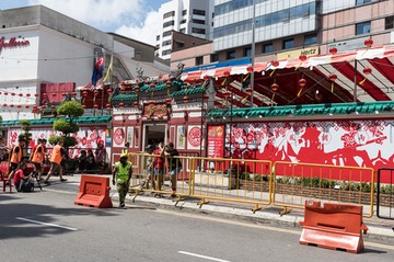 Each time a deity arrived back in the temple, there was a lot of noise as the warders whistled everyone out of the way and the police tried a bit of crowd control. Then the hands went up in the air, either in prayer or to take photos! After Yuan Tian Da Di had arrived, then a few people entered from the street outside and it was time for us to leave.