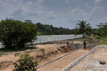 This raised platform houses the graves of Laksamana Bentan and his wife, both killed by Sultan Mahmud Shah II. You can see that the graves stones in one grave are covered in yellow silk, which I thought was reserved for Malay royalty, yet the Laksamana was not ‘royal’? Another mystery to solve! This tomb is right next to the Johor River, near to the suspension bridge, and the signboard suggests that this site was used as a defensive outpost during the old Johor Sultanate. In 2006-2007, this area suffered severe flooding which destroyed much of the mausoleum. Indeed you can still see a lot of damage to the structure but there were workmen nearby sorting things out. It is possible that the area suffered from more recent flooding (Jan. 2017) as well.