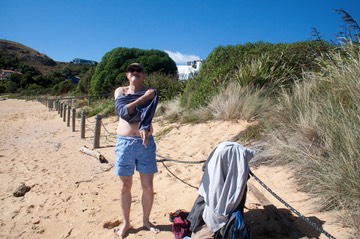 Decided to have a ‘holiday’ today, after yesterday’s long and hard day travelling! Didn’t want to get back onto the windy roads again, and as the sun was shining, we went to the beach at Little Kaiteriteri, as we were told it would be sheltered from the wind which was blowing today. When we arrived, we pretty much had the beach to ourselves, as most visitors go to the Kaiteriteri beach around the corner.